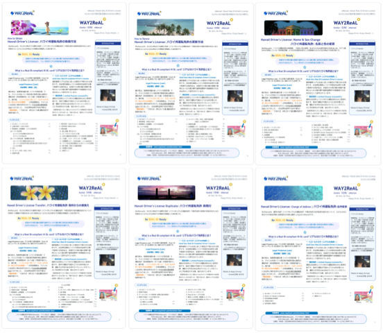 ハワイ州DMV用書類・戸籍抄本の翻訳詳細ハワイ州運転免許手続きについての個別サポートからはリタイア致しましたので、現在は、特別なケースでお困りの際、DMVなど個別に質問がある方のみ、代行で問合せ内容を翻訳致します。